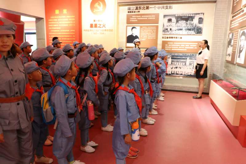 (记者 吴鲜)近日,56名少年队员着装小红军服在辅导员老师带领下来到会泽红色文化展览馆,缅怀红色文化。参加由云南会泽县春晖小学主办,会泽县红色文化展览馆、会泽县新华书店、会泽县人民武装部协办2018“闪闪的红星”主题教育,暨“圆梦浦公英”夏令营在红色文化展览馆举行开营仪式。