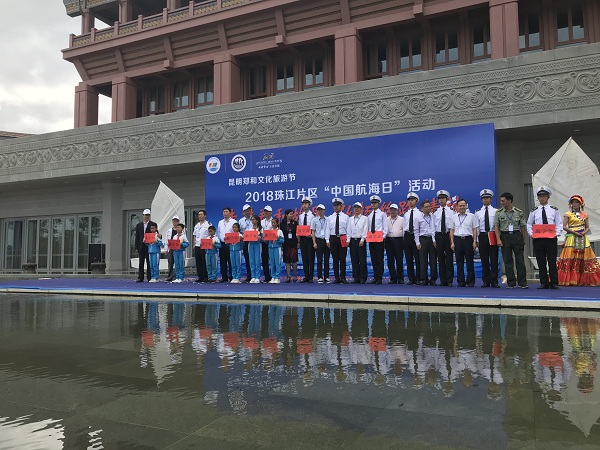 2018年珠江片区“中国航海日”活动分两部分开展。其中,7月19日上午,在昆明滇池湿地管理中心(七彩云南·古滇名城内)举行2018年珠江片区“中国航海日”启动仪式。在晋宁区领导、交通运输部珠江航务管理局领导、省交通运输厅领导讲话后,举行的捐资助学活动中,云南交通技师学院、宝峰二小两个学校的部分贫困学生受到捐助;开展歌颂郑和航海事迹、反映云南民族特色的文艺表演;此外,还邀请云南交通运输职业学院院长、云南省郑和研究会副会长杨经元先生,开展郑和七下西洋事迹及郑和精神专题讲座。7月19日下午,在晋宁区郑和公园依次举行瞻仰郑和塑像、船模赠送仪式、参观郑和纪念馆及种植纪念树活动。在船模赠送仪式上,珠江航务管理局赠送了“领航舵”模型,广东海事局赠送了“海巡31”模型,南海救助局赠送了“南海救101”模型,南海航海保障中心赠送了“美济灯塔”模型,中交广州航道局有限公司赠送了“浚洋1号”模型,广州发展能源物流集团有限公司赠送了“新能源电动自卸船”模型,深圳市航运集团有限公司赠送了“40M鹏星”高速客轮模型。