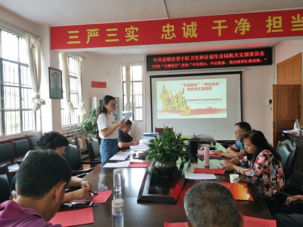 (记者 钱丙申 通讯员 蔡耀光)2018年7月20日晋宁区卫计局机关党支部开展“不忘初心、牢记使命、我向党汇报思想”主题党日活动。局领导班子成员、机关支部全体党员参加。