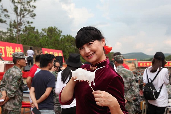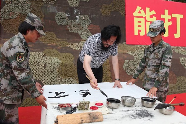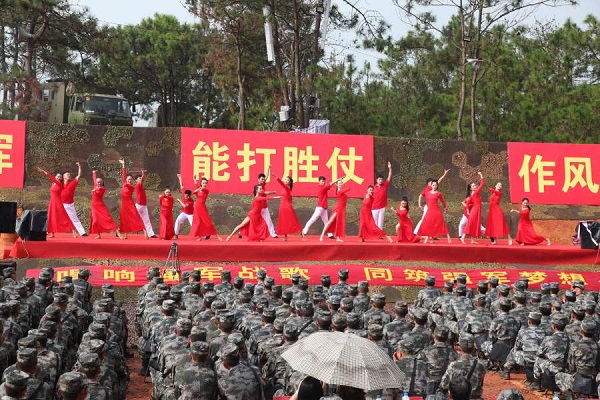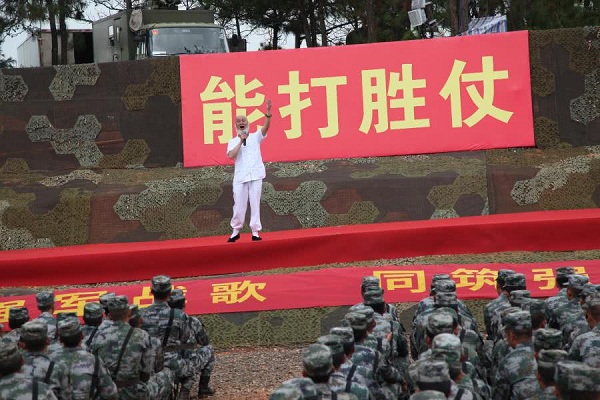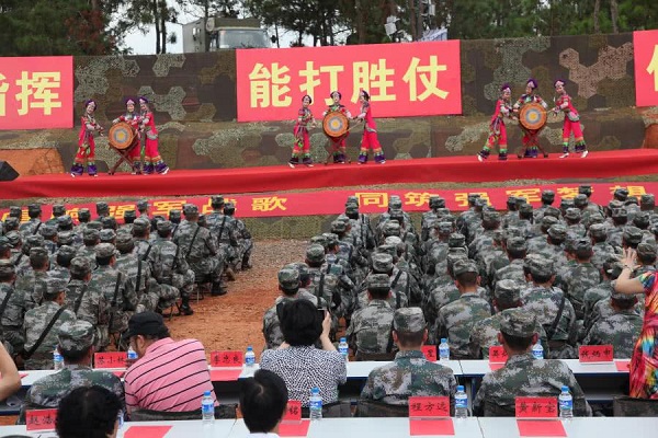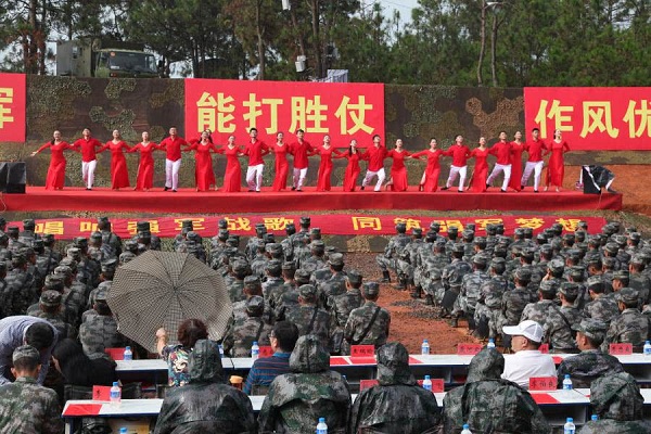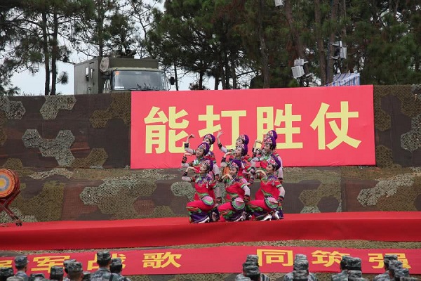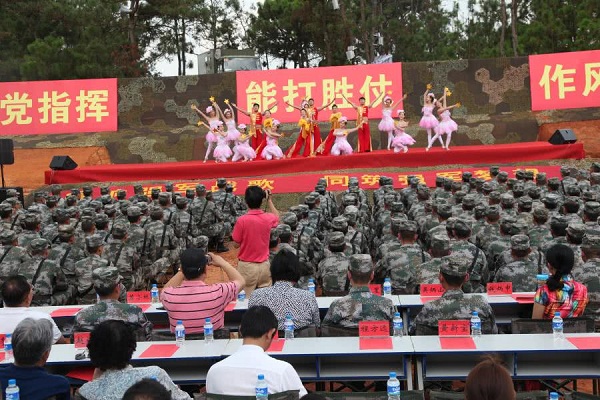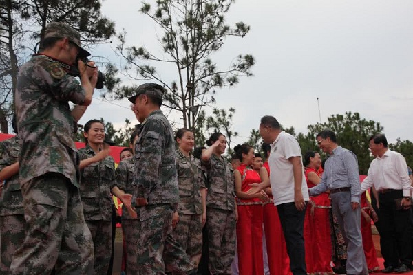 在拥军活动中,田枫演员为战士表演了歌曲,《等待》,《诗歌中国人》。受到广大官兵雷鸣般掌手。书画家毛然为战士为节日留下书法,不忘初心,其中郑爱兵,为战士演唱了《当兵的人》,战士掌手不一阵阵欢歌中产生。民革老党员,王艺为战士演唱《祖国颂》,《一条大河波浪宽》,云南百灵鸟演唱了《云南美》,《 我和我的祖国》百灵鸟与部队首长演唱了《为了谁》使节目推向了高潮,掌声不断。更可贵的是演出中途下雨,领导、战士在雨中坚持看节目,演绎了又一雨中情。 愉快的歌声响彻云霄。难忘的八一节在愉快的歌声结束!共庆中国人民解放军建军91周年,共谱新时代军民融合发展新篇章。