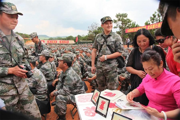 (记者 钱丙申摄影报道)7月30日下午,由民革云南省委经济总支原副主委李忠良,带领老党员,田枫,毛然于秋丽,王艺,并联合了云南省侨联副主席聂云河、甘肃商会秘书长、书画家毛然、云南百灵鸟、云南黄龙实业集团、昆明禄丰商会、云南省文联民间文艺家协会等单位来到曲靖市参加驻昆部队某旅八一节拥军活动,体现以主题为 “军民团结一家亲,同心共筑中国梦”“唱响强军战歌,同筑强军梦想”。参加媒体有云南电视台、云南法制经济网、天天快报云南法制经济网、腾讯新闻云南法制经济网。