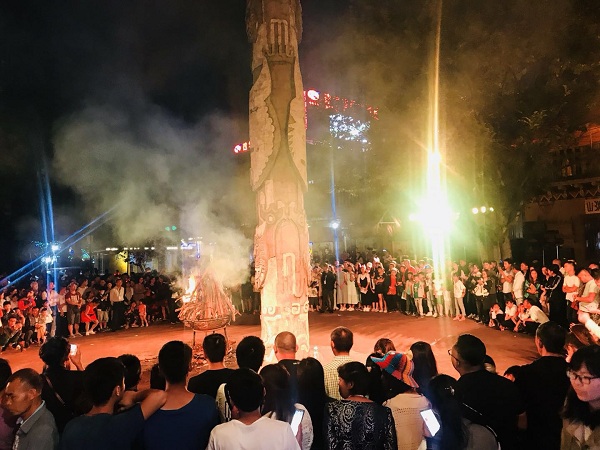 8月5日晚,楚雄市太阳历文化园人山人海、热闹非凡,灯光、火光、高空礼花照亮夜空,歌声、乐声、欢呼声响彻云霄。以“火”为主线,展示彝族传统习俗和火文化魅力的中国·楚雄2018彝族火把节祭火大典在这里隆重举行。来自国内外的嘉宾和游客欢聚一堂,感受彝家人火一样的热情。火代表热情,象征吉祥,寄寓希望。彝族是崇拜火的民族,千百年来,彝族先民用火取暖、照明、祭祀、庆祝和烹调食物,虔诚守护着火种,对火充满敬畏与感激。在欢快激扬的彝族歌舞表演中,祭火大典拉开了的序幕,德高望重的毕摩念诵起祭祀火神的毕摩经,祈求来年风调雨顺、五谷丰登,为大家送上节日火红的祝福。诵经祈福之后,毕摩钻木取火,随着缕缕青烟升起,2018年彝族火把节的火种点燃,现场响起阵阵欢呼声。随后,伴随着彝族的大号、唢呐、羊皮鼓舞,出席庆典仪式的领导嘉宾在主祭毕摩的带领下,点燃了象征吉祥、丰收、幸福的主火把,并加入到火把巡游队伍中,一同融入了火的狂欢。熊熊火光映照下,天空礼花齐放,璀璨夺目,火把狂欢也随之开始,人们“耍”着火把,唱着彝族跌脚调,跳着左脚舞,沉醉在火的乐章中,共同感受彝族火文化的博大精深。