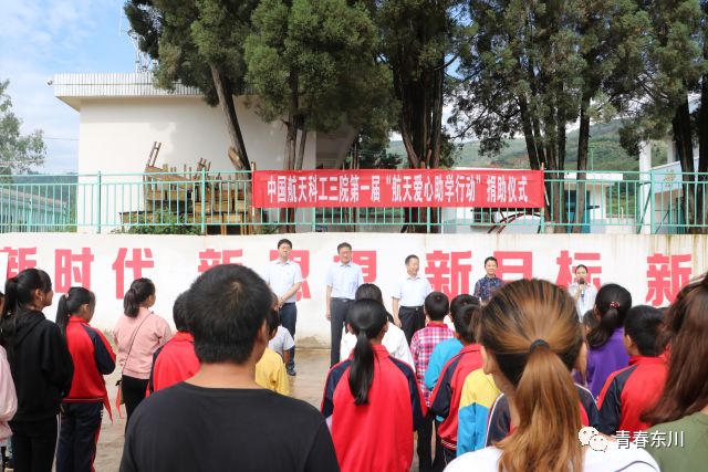 东川区颜副区长在讲话中指出,东川是昆明市深度贫困县区,在东川决战脱贫攻坚的关键时期,得到航天科工集团三院的鼎力支持。要求受助学生常怀感恩之心,长举谢恩之行,做爱心传递者,将来回馈社会、建设家乡、报效祖国。