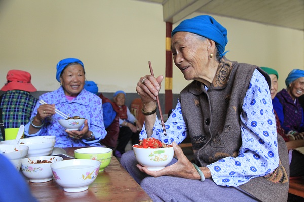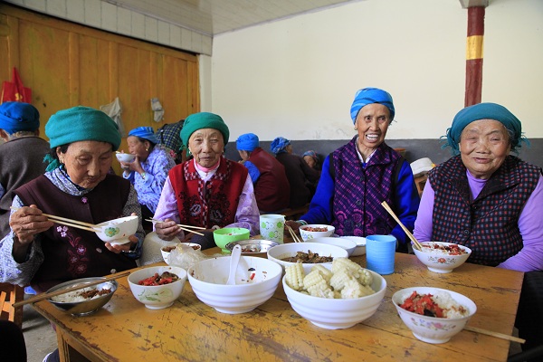 朱家营村的老人均可进入养老中心吃饭,65岁以上的老人由村组补贴后每人每月只交100元。很多村民都将自家种的蔬菜水果顺路捎到了“爱心饭堂”不收钱,向老人们献出爱心;当地企业晋宁宣腾山村农业开发有限公司每年为老人捐出500公斤各类蔬菜……
