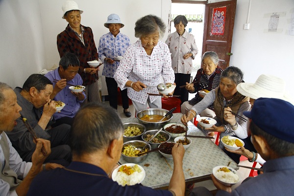 “爸妈饭桌”是由老年人自由组成10人以上的互助小组搭伙做饭,参加“爸妈饭桌”的老年人每月能享受到村组给予的300元的补贴,由60多岁的“年轻老年人”轮流做饭,体弱多病和年纪大的老人可以直接来吃现成饭,生病没来的,小组成员随时关心、监护,还会主动送饭上门。