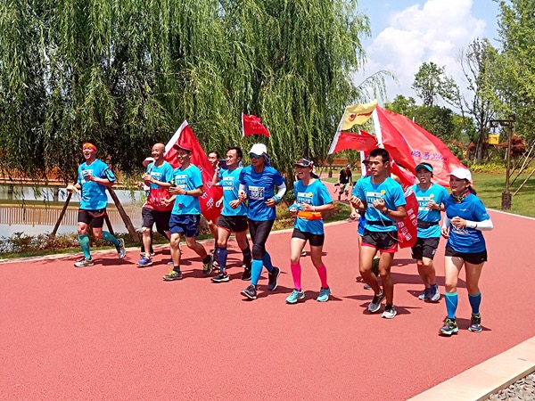 “七彩云南 秘境百马”第八十八场马拉松赛从起跑点昭阳古城辕门口广场出发后,围绕省耕文化公园跑11圈,中午两点左右,在著名探险家、秘境百马发起人、昭通荣誉市民金飞豹嘉宾的领跑下,全程马拉松运动员在终点站省耕文化公园诗词歌赋广场胜利冲刺,圆满完成第八十八站赛程。冲刺时金飞豹等嘉宾高举昭通苹果,让世界知晓昭通苹果最甜,土豆更香。
