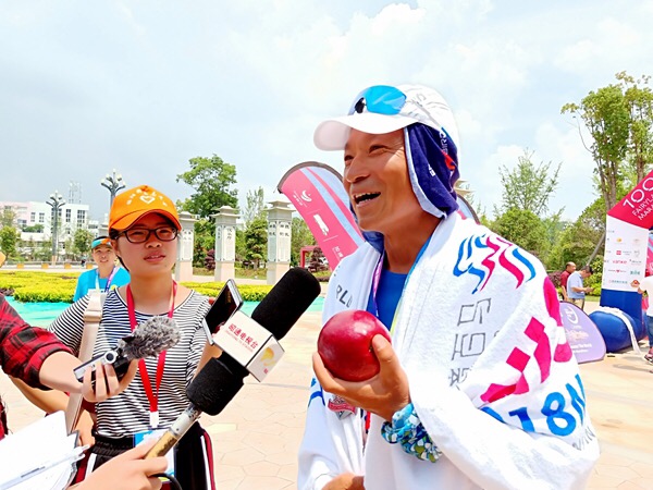 在顺利结束马拉松赛后,金飞豹在接受了记者采访。 金飞豹说:“昭通是‘七彩云南 秘境百马’的第88站,可以说是88天以来,是我跑过的最好的一条赛道,这条赛道在全省公园里面的赛道都是高标准,我跑下来觉得非常开心。今天要感谢昭通众多的朋友来助跑'秘境百马',也让我看到了昭通这座城市充满活力的全民健身群众基础。也要感谢昭通市委市政府对'秘境百马'的大力支持,希望每一场'秘境百马'能够通过奔跑的方式来宣传展示云南的美。在昭通我感受到回到家乡的一种亲切感,因为我是昭通荣誉市民。特别是一路奔跑,我感受到了昭通苹果在助我奔跑,昭通苹果本身是非常好的产品,我一直觉得昭通苹果是我们中国最好的水果,今天一路上通过补给站也品尝到昭通美味的苹果,完赛以后我还要好好享受美味的昭通苹果。”