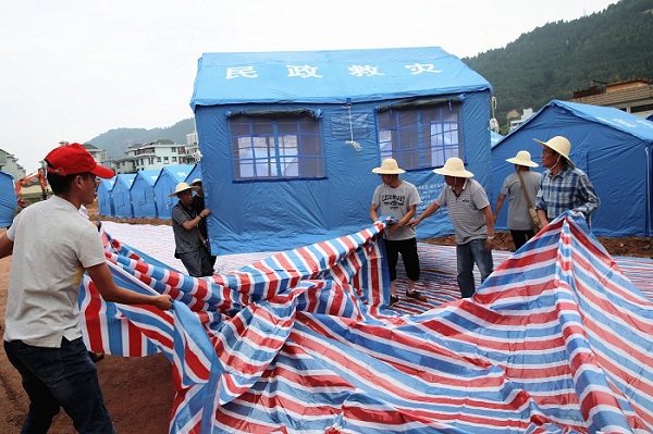 为确保灾民最快入住帐篷,15日上午,县人大机关按照县抗震救灾指挥部的安排,转入新城区临时安置点帐篷搭建任务,大家在熟练掌握救灾帐篷搭建与拆装工作后,铺垫地块、组装框架、撑蓬、捆绑、打桩固定,顾不上喝一口水、休息一会儿,发扬人大干部众志成城,团结抗灾的精神,井然有序、协同作战、忙而不乱,连续奋战近11个小时的,与其他协同单位一道完成400余顶帐篷搭建任务。