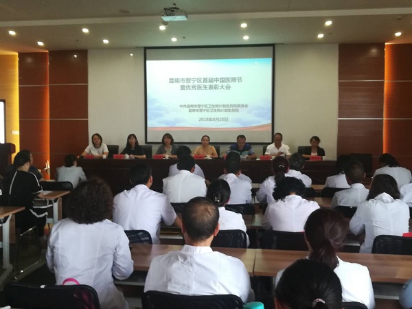 (记者 钱丙申 通讯员 蔡耀光)2018年8月20日,晋宁区卫计局召开庆祝首个“中国医师节”暨“晋宁区优秀医师”表彰大会,对我区长期以来奋战在治病救人第一线、坚守在服务群众健康最前沿的35名来自公立医疗卫生单位和民营医院的优秀医师进行了表彰。晋宁区人民政府副区长普娅馨同志到会,全区医疗卫生单位党政主要领导、机关科室负责人、民营医疗机构领导、区医院中层以上干部、医师代表100余人参加了会议。