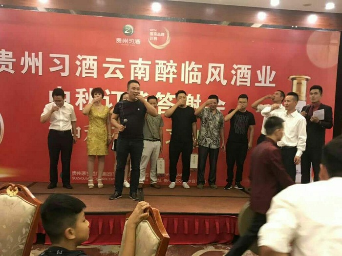 云南醉临风酒业有限公司总经理蒙礼秘介绍:本公司创建于2012年,是一家专业的酒类营销公司,为贵州习酒昆明签约全渠道经销商,主要签的产品有:习酒1988、习酒窖藏1998、金质习酒、银质习酒、老习酒、浓香系列等产品。本公司还经销各类国产、进口红酒、公司年销售额为9000万元以上,为感谢广大客户对习酒的关心与支持,特联合习酒公司开展中秋订货会感恩回馈活动。