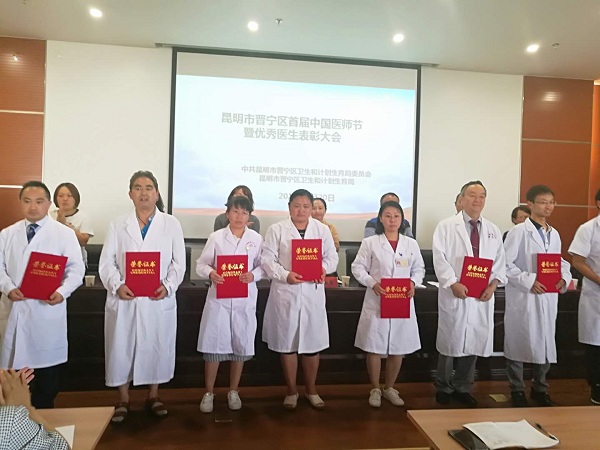 (记者 钱丙申 通讯员 蔡耀光)2018年8月20日,晋宁区卫计局召开庆祝首个“中国医师节”暨“晋宁区优秀医师”表彰大会,对晋宁区长期以来奋战在治病救人第一线、坚守在服务群众健康最前沿的35名来自公立医疗卫生单位和民营医院的优秀医师进行了表彰。晋宁区人民政府副区长普娅馨同志到会,全区医疗卫生单位党政主要领导、机关科室负责人、民营医疗机构领导、区医院中层以上干部、医师代表100余人参加了会议。
