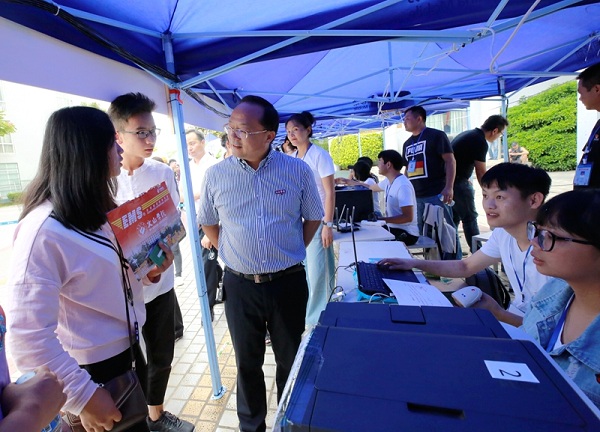 校领导班子在党委书记熊荣元带领下,深入各报到点实地督导检查迎新工作,了解宿舍、食堂、教学等相关情况,要求确保校园安全、交通畅通、环境整洁,给新生及家长留下良好印象。熊书记一行还逐一看望了各新任班主任,要求班主任们要细致入微的关心新同学的学习和生活,提醒新同学们注意交通安全,防止电信诈骗和校园网贷。