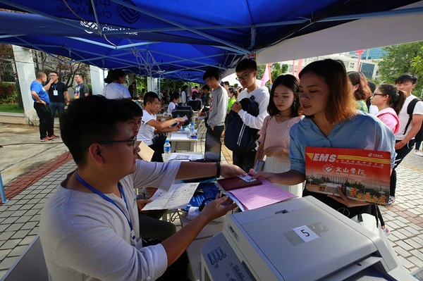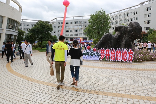 9月1日上午,沐浴着晨曦的阳光,新生们在家长的陪同下,陆陆续续来到学校,前往报到点进行报到。校园里随处可见迎新标语、导视标识和报名流程,学工部、校团委、财务处、招就处、后勤处及各二级学院热情服务,及时为新生及家长解决问题。为了确保新生安全到达,学校在报到前安排工作人员逐一给新生打电话,询问出行方式和到达时间,组织170名志愿者,分别到城区各车站以及机场、高铁站进行接待,党委宣传部利用微信及时推送地理信息,引导新生安全到校。校园内,500余名志愿者在校内引导新生办理缴费、入住寝室等相关手续;为确保家庭经济困难学生特别是建档立卡户学生顺利入学,学校采取设立绿色通道、奖助学金、生源地助学贷款等一系列措施,加大对家庭经济困难新生的资助力度。