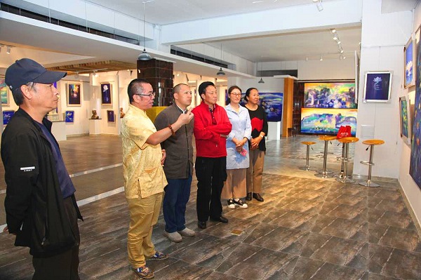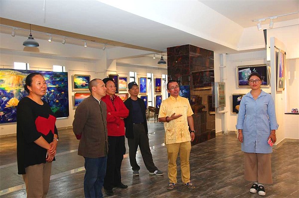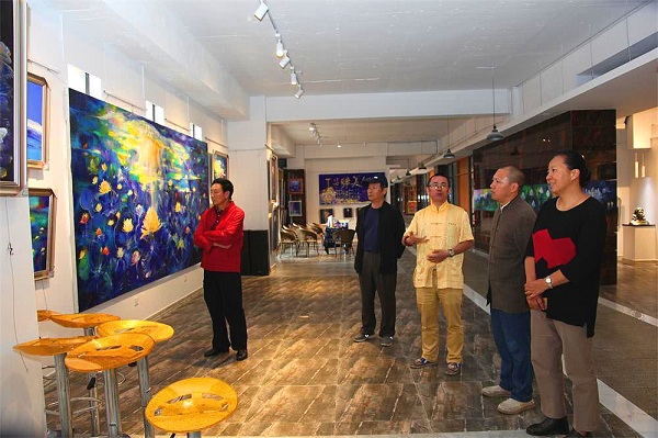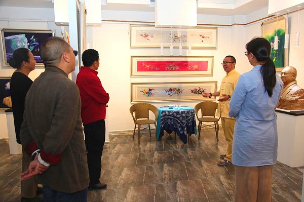 (记者 钱丙申摄影报道)9月7日,在丁昌胜美术馆,丁昌胜先生以七彩莲花的善、孝文化为依托,和各界人士交流探讨一直认为把每月7号作为“大宝七彩莲花画展家风日”。