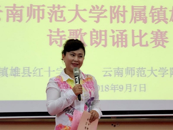 云南省红十字会爱心大使,昆明电视台著名节目主持人、国家一级播音员张惠对学生们的精彩朗诵进行了点评,示范朗诵学生作品《我自豪,我是志愿者》