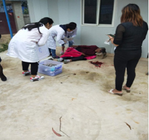 2018年9月12日上午8点左右,宝峰中心卫生院按计划到宝峰村开展义诊活动。到达现场准备开展工作,乡村医生接到电话,声称有人受伤倒在路边。医院领导二话没说叫上医务人员直奔事发现场。医院医务人员到达现场看到伤者是一位七旬老人,头部有多处明显刀伤,身上和地上全是血迹。经过询问得知,老人是低保户,子女长期不在家,因病无人照顾所以自行短见。医院医务人员对老人伤口进行包扎处理,并打开静脉通道,在和其家属取得联系后,医院医务人员在很短的时间内把老人送到区人民医院进行下一步的救治。