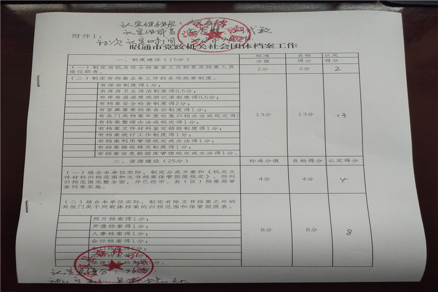 评审认定中,考核组认真听取了县森林公安局档案工作规范化管理情况报告后,就按照《昭通市党政机关社会团体档案工作规范化管理示范单位认定标准》,开始实地查看档案库房、调卷抽查、检查相关台账记录等进行逐项评分。经县档案局考核组严格评审认定,巧家县森林公安局最终得分96分,符合认定标准,达到认定要求,拟被认定为档案工作规范化管理示范单位。