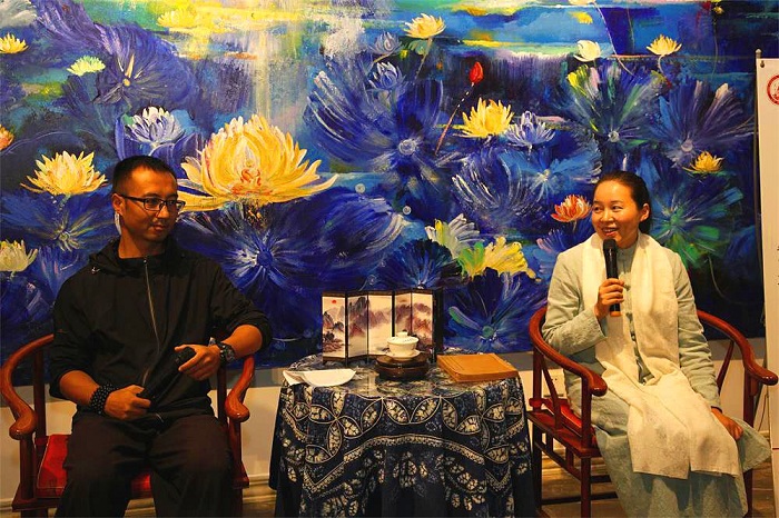 中国东方礼仪研究院云南分院院长,怀德书院创办人马铁桓 (左)东方礼仪研究院云南分院的特聘国学讲师王海蓉