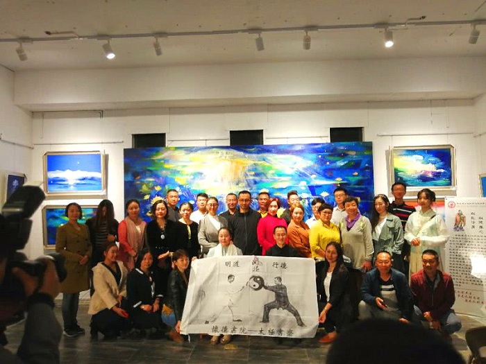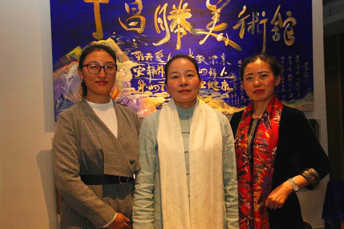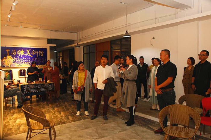 张杨晶(右三)介绍丁昌胜美术馆的作品