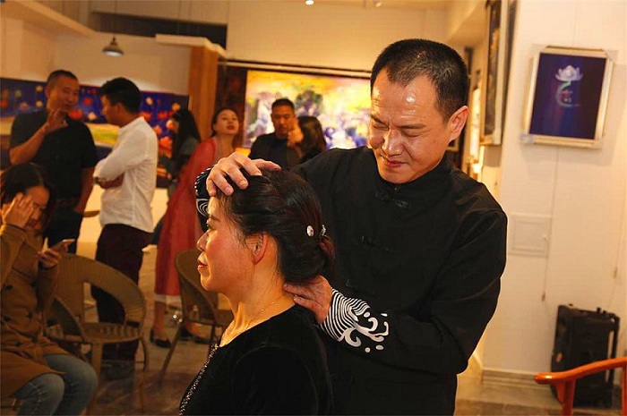 彭新杰老师讲解正骨养生方面的知识及现场实施了推拿