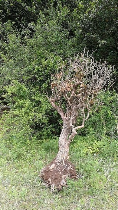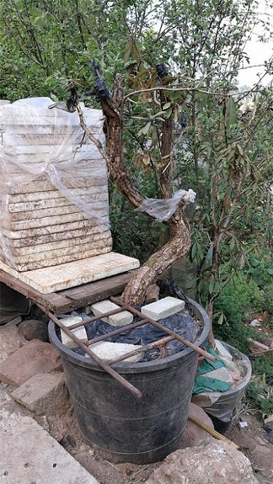 晋宁区森林公安局将收缴的野生大树杜鹃重新栽培、穿衣,挂营养袋
