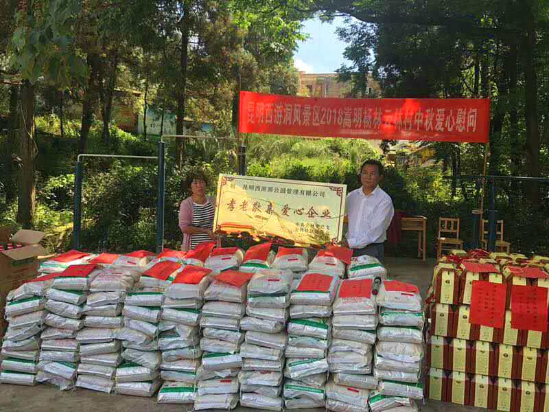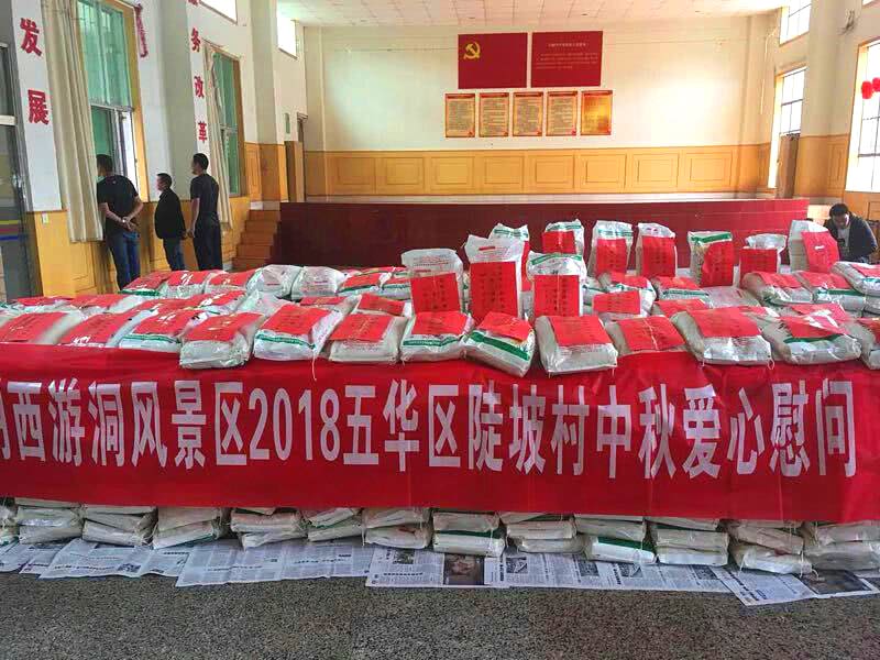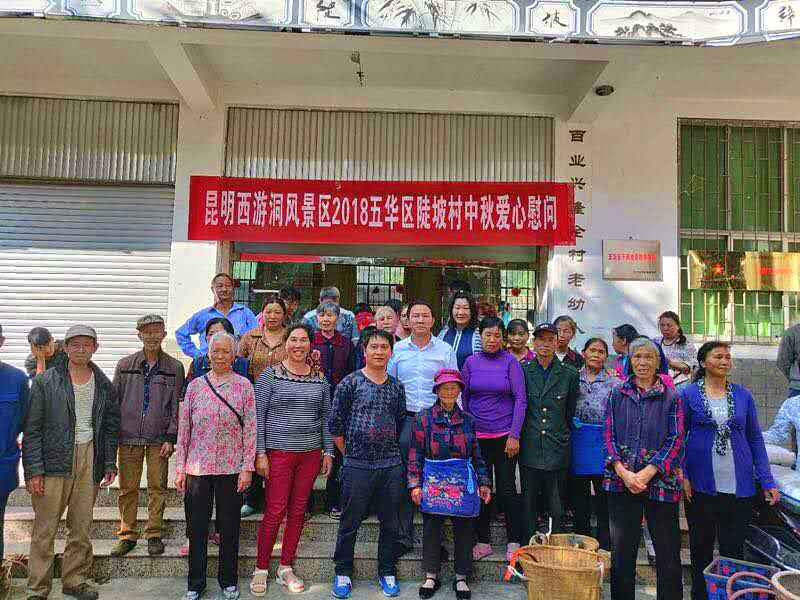 9月20日,在中秋节即将到来之际,昆明市西游洞公园管理有限公司组织全体员工,到五华区西翥街道办事处陡坡村等地开展“2018年中秋爱心慰问活动”,为当地村民送去大米、食用油、月饼等中秋福利,让村们欢度中秋佳节。