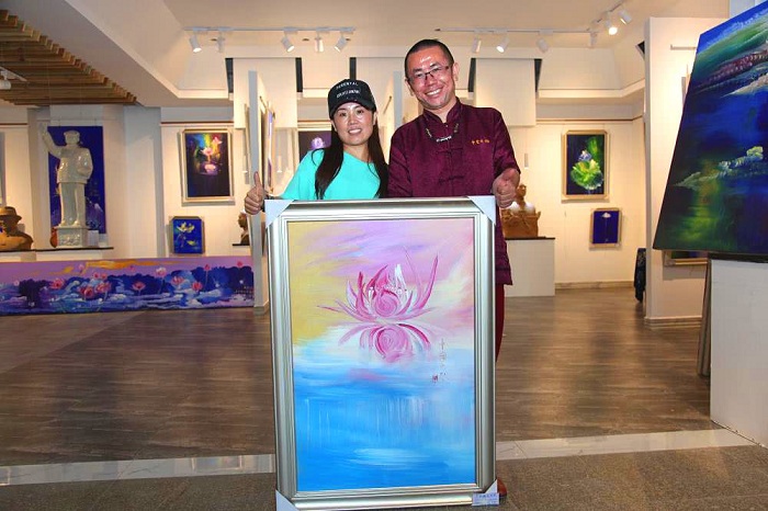 五朵雪花纳和祥让世界充满愛家风日吴长娥(左)把心爱之画带回家