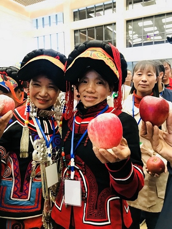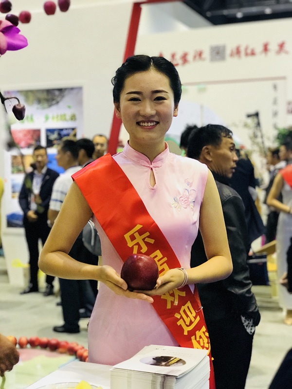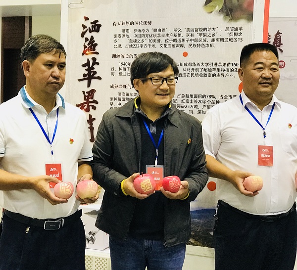 昭阳区委宣传部部长沈洋(中)出席昭通苹果展销大会