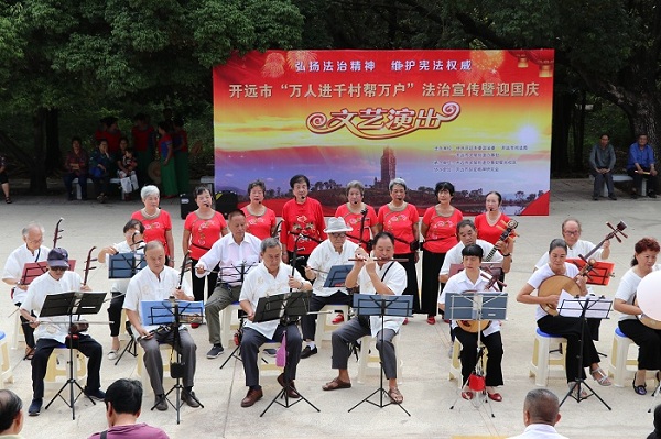 社区文艺队表演法治文艺节目