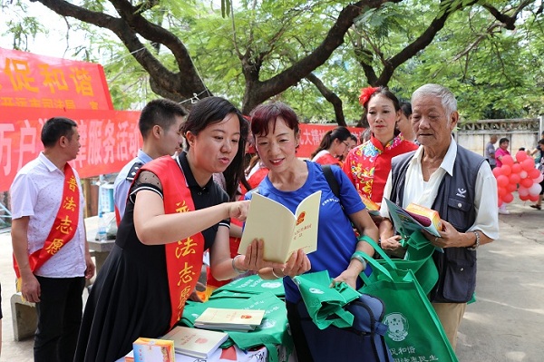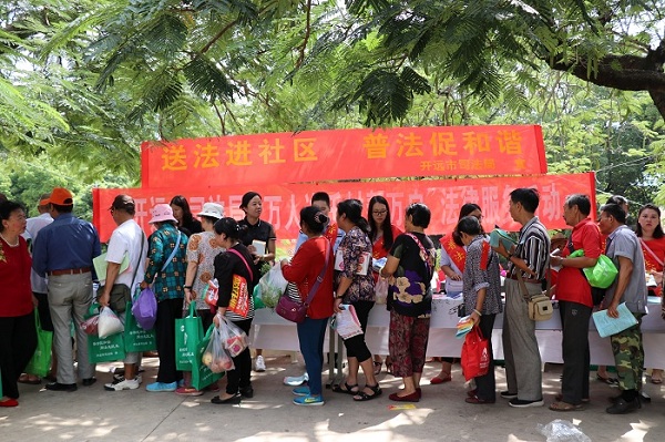 9月27日上午,开远市“弘扬法治精神 维护宪法权威 ——万人进千村帮万户法治宣传进社区活动”在开远市灵泉街道办事处星光社区举行。