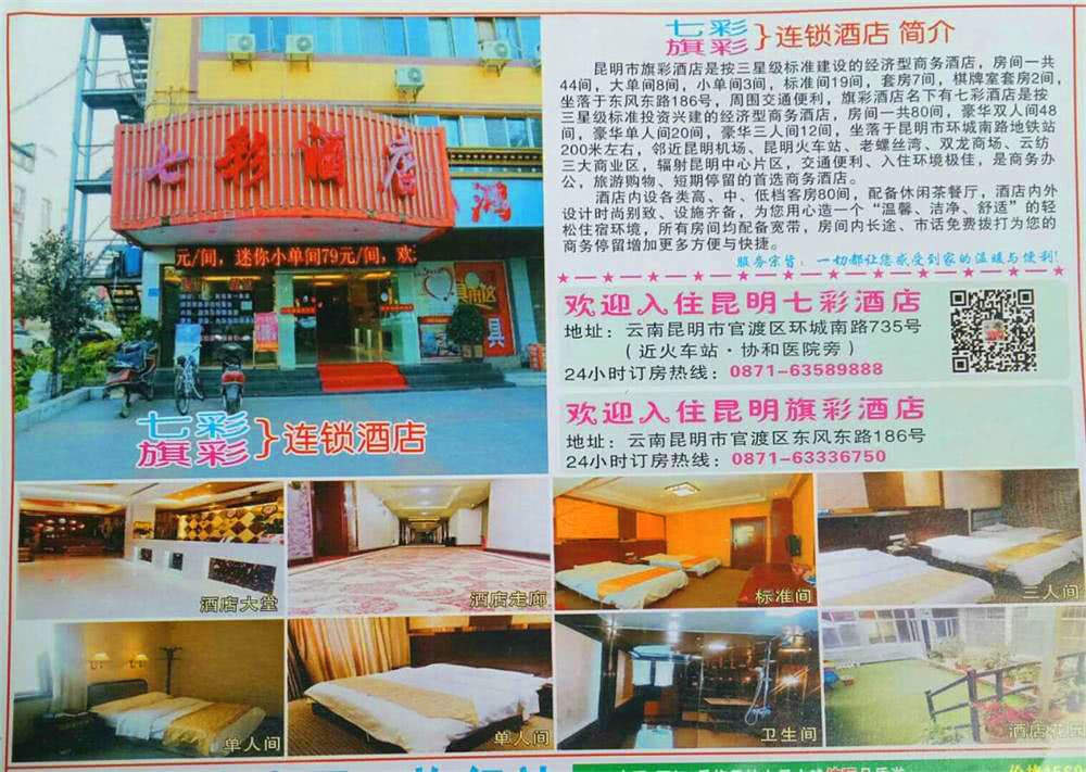 谈到经营酒店,王总对记者说,昆明是一座旅游城市,我们经营旗彩酒店,是按三星级标准建设的经济型商务酒店,座落于东风东路186号。旗彩酒店名下有七彩酒店是按准三星级标准投资兴建的经济型商务酒店,坐落于昆明市环城南路地铁站200米左右,邻近火车站,双龙商场、云纺三大商业区,辐射昆明中心片区,交通便利,酒店内设各类高、中、低档客房80间,配备休闲茶餐厅,酒店内外设计时尚别致,设施齐备,为客人用心营造一个“温馨、洁净、舒适”的轻松住宿环境,所有房间均配备宽带,房间内长途、市话免费拨打为客人的商务停留增加更多方便与快捷。