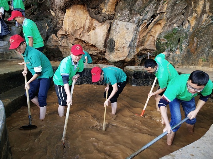 下午,为了帮助八播村村民改善村居环境卫生,引导村民们养成文明健康生活习惯,建设和谐、美丽、幸福乡村,志愿者们与八播村干部一同清扫道路上的垃圾、杂物、牲畜粪便,清理村生活饮用水源“龙谭”淤泥,保证水源安全卫生。志愿者们不畏冬日潭水刺骨,纷纷脱下鞋子,撸起袖子,拿起锄头铲子,下到水里清理潭底淤积的泥沙。活动最后,为增强文山学院青年师生与基层党员的情感联系,志愿者们与八播村的党员干部们开展了篮球友谊联赛。