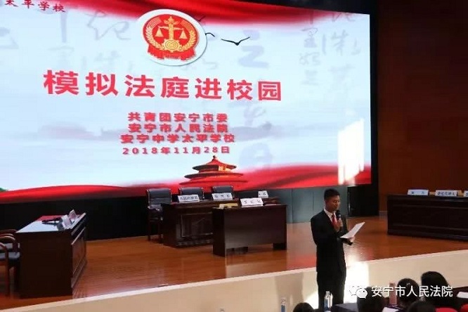 (记者 钱丙申)由共青团安宁市委牵头,11月27日、11月28日,安宁法院速裁审判单元分别到安宁中学、安宁中学太平学校开展了两场“模拟法庭进校园”活动。