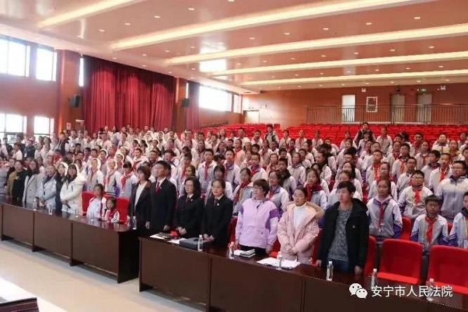 共青团安宁市委副书记胡艳、安宁中学太平学校德育处主任高玫参加了安宁中学太平学校模拟法庭活动,安宁中学太平学校初一、初二年级400余名师生旁听了模拟法庭庭审。