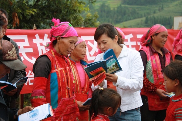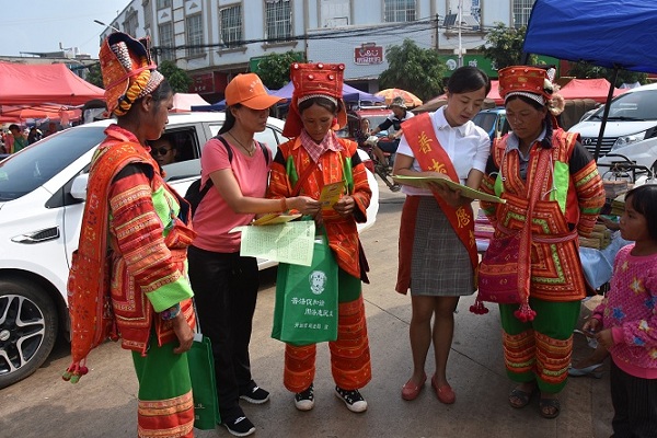 图为开远市组织开展送法下乡活动,活动中市司法局工作人员向山区少数民族群众讲解法律知识