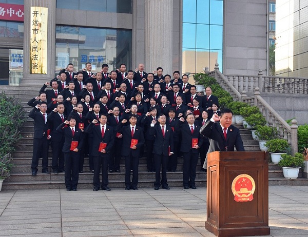 图为“12.4”国家宪法日开远市人民法院开展宪法集中宣誓活动