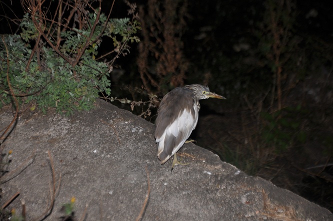 知识链接:池鹭(学名:Ardeolabacchus)系典型涉禽类,体长约47厘米,翼白色、身体具褐色纵纹的鹭。繁殖羽:头及颈深栗色,胸紫酱色。冬季:站立时具褐色纵纹,飞行时体白而背部深褐。虹膜褐色;嘴黄色(冬季);腿及脚绿灰色。通常无声,争吵时发出低沉的呱呱叫声。栖息于稻田、池塘、沼泽、喜单只或3-5只结小群在水田或沼泽地中觅食,性不甚畏人。食性以鱼类、蛙、昆虫为主,幼雏与成鸟的食物成分相类似。繁殖期营巢于树上或竹林间,巢呈浅圆盘状,由树枝、杉木枯枝、竹枝、茶树枝及菝葜藤等组成,巢内无其他铺垫物。5月上、中旬产卵,每窝产卵3-6枚。分布于孟加拉国至中国及东南亚。越冬至马来半岛、印度支那及大巽他群岛。 |