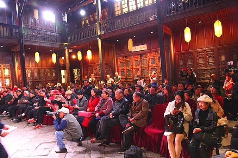 (记者 钱丙申摄影报道)寒潮绕道去,热情洋溢来。2018年12月21日晚在昆明市中心钱王街马家大院由奕禾文化传媒有限公司、盘龙区文化馆昆明人艺术团主办的昆明人艺术团迎春晚会,晚会由林伊主持,参加晚会有盘龙区文联领导、公司领导及艺术团团长和来宾,整个马家大院高朋满座,场面充满着热烈而轻松,幽雅文静,人们放松心情聆听老昆明的历史、音律,各式表演显了各类艺术的魅力,场面甚是壮观、欢快、幽雅,充满着浓厚的艺术文化气氛。