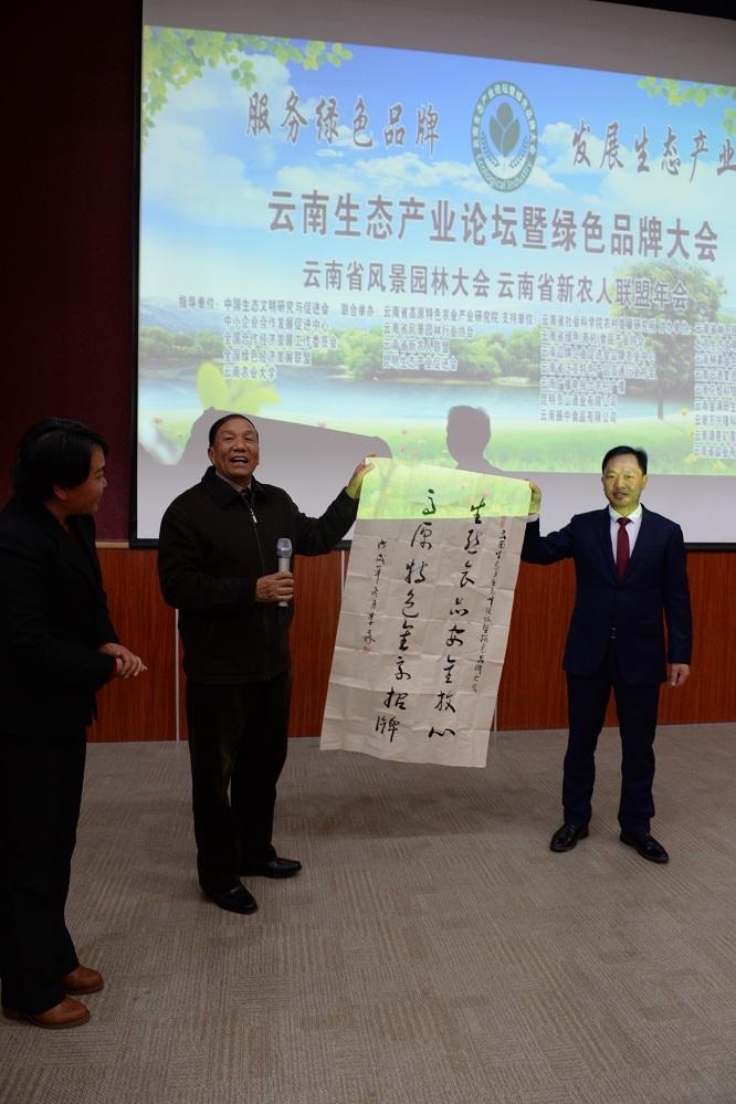 (柴霞文/图)党的十九大报告指出,我们既要绿水青山也要金山银山。我们要提供更多优质生态产品以满足人民日益增长的美好生活需要。2018年12月28日,以“服务绿色品牌,发展生态产业”为主题,由云南省高原特色农业产业研究院、云南省风景园林行业协会、云南省新农人联盟、昆明生态产业促进会等单位联合举办的云南生态产业论坛暨绿色品牌大会在云南农业大学召开,大会得到了中国生态文明研究与促进会、中小企业合作发展促进中心全国绿色经济发展联盟、云南省社会科学研究院农村发展研究所、云南农业大学、云南省林下经济发展促进会、云南省新农村建设发展促进会、北京生态文明工程研究院、云南省绿色(有机)食品产业协会等单位和领导大力支持。
