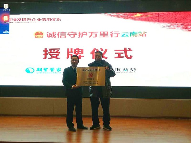 云南人宁愿自己吃亏,也不会忘记自己的本分,那就是诚信为本,以诚待人。如今这正是云南人最大的优点,吸引了我及更多的企业家来到云南投资发展、学习考察。让个人没有难管的信用,是我们公司的发展使命,今天我非常高兴能把“诚信守护”的接力棒带到云南,交给陈多。我们已经迈出了第一步,我们也愿意在云南投入更多的时间、精力、物力,去传承云南人这种独有的品质,陈多就是一位典型的云南人。