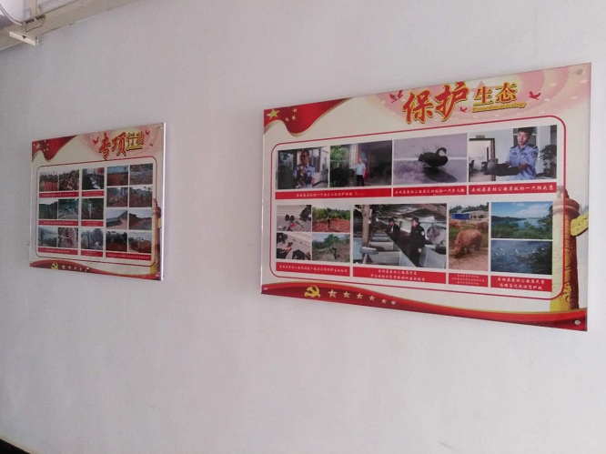 警营文化墙主要展示了石林县森林公安局建设、森林防火、脱贫攻坚、党建工作、队伍风采、保护动植物等主题。形象、直观、立体的展现了森林公安民警在队伍建设、规范执法、为民服务等工作生活领域中良好的精神风貌。提高了民警、辅警学习的热情和工作的激情。