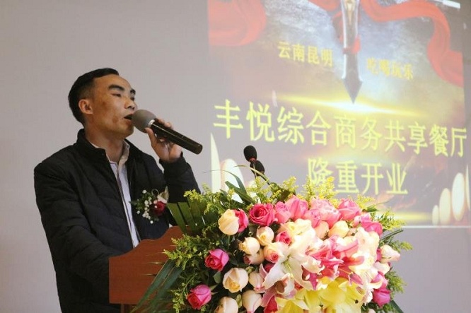 2019年1月14日,在即将跨入新春的时刻,位于昆明市青年路苏宁电器五楼上,丰悦综合商务餐饮在各级领导、广大朋友的关心支持和全体股东、员工的共同努力下盛大开幕。餐饮的开业凝聚了全体股东和员工的辛勤汗水,凝聚着亲朋好友的理解和支持、凝聚了上级领导的关心与厚爱。前来参加开业庆典的嘉宾有来自全省的企业精英,社会名流、媒体记者共100余人。大家齐聚一堂,共同听取了主办方的激奋人心的分享。在开业庆典活动中,主办方还有精彩的文艺表演。