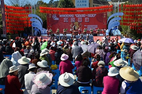 活动现场,一个个具有地方民族特色的节目掀开了2019年新春喜庆氛围。2018年晋宁区弘扬中华优秀传统文化“秧鼓飞花·舞动晋宁”秧佬鼓舞大赛银奖节目《彝家娃娃跳秧鼓》,2017、2018昆明郑和文化旅游节郑和纪念大典新创节目《郑和赋》,2018年晋宁区“和谐大舞台”文化惠民演出优秀节目、晋宁区“庆祝改革开放40周年”小戏小品文艺展演一等奖节目花灯小戏《一顶帽子》等12个精心挑选的节目让观众大饱眼福,切实感受到了春节浓厚的节日氛围,现场气氛热烈,年味十足。