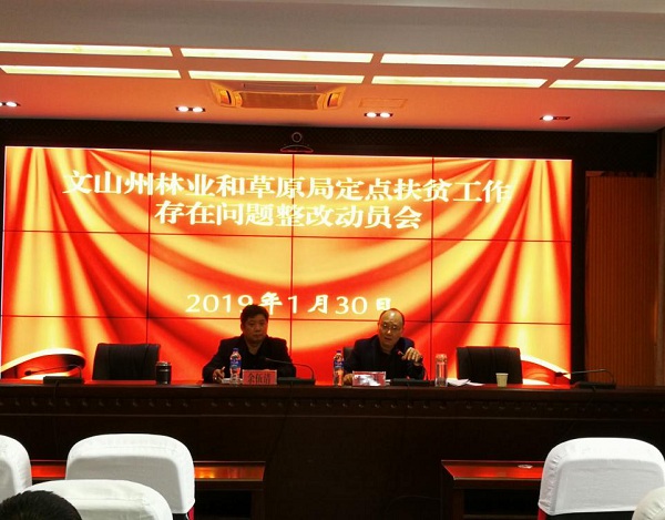(记者 钱丙申)为贯彻落实2019年1月28日州委召开的脱贫攻坚交办会议精神和州人大常委会副主任兰朝明同志在八嘎乡政府召开的座谈会议精神。2019年1月30日,州林业和草原局召开定点扶贫工作存在问题整改动员会。局党组书记、局长周贤柱同志作动员讲话,局党组成员、全局挂钩干部职工100余人参会。
