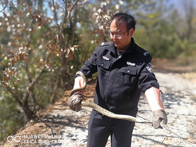 云南昆明晋宁森警救助一条菜花蛇