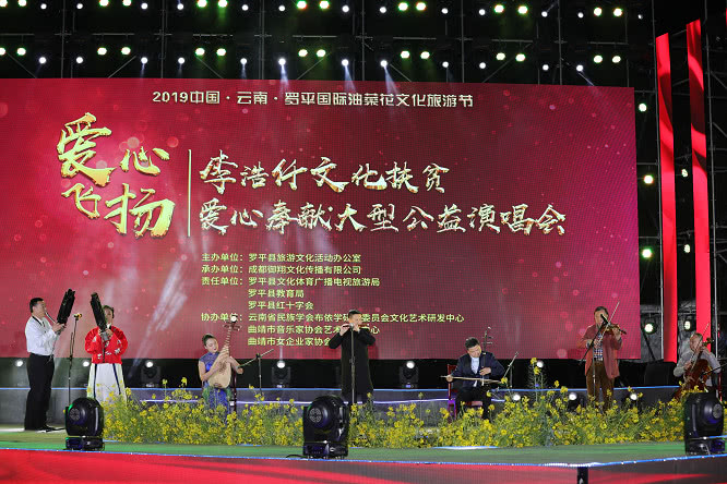 由罗平县旅游文化活动办公室主办,罗平县文化体育广播电视旅游局、罗平县教育局、罗平县红十字会支持举办、成都御翔文化传播有限公司承办,云南省民族学会布依学研究委员会文化艺术研发中心、曲靖市音乐家协会艺术创作中心、罗平县女企业家协会协办的2019中国·云南·罗平国际油菜花文化旅游节“爱心飞扬”李浩仟文化扶贫 爱心奉献大型公益演唱会在这里拉开帷幕……