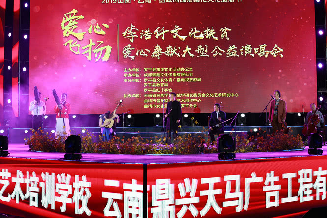 由罗平县旅游文化活动办公室主办,罗平县文化体育广播电视旅游局、罗平县教育局、罗平县红十字会支持举办、成都御翔文化传播有限公司承办,云南省民族学会布依学研究委员会文化艺术研发中心、曲靖市音乐家协会艺术创作中心、罗平县女企业家协会协办的2019中国·云南·罗平国际油菜花文化旅游节“爱心飞扬”李浩仟文化扶贫 爱心奉献大型公益演唱会在这里拉开帷幕……