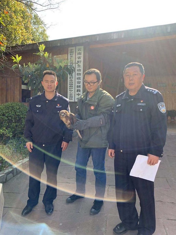 云南昆明安宁市自然资源公安局及时救助一只游隼