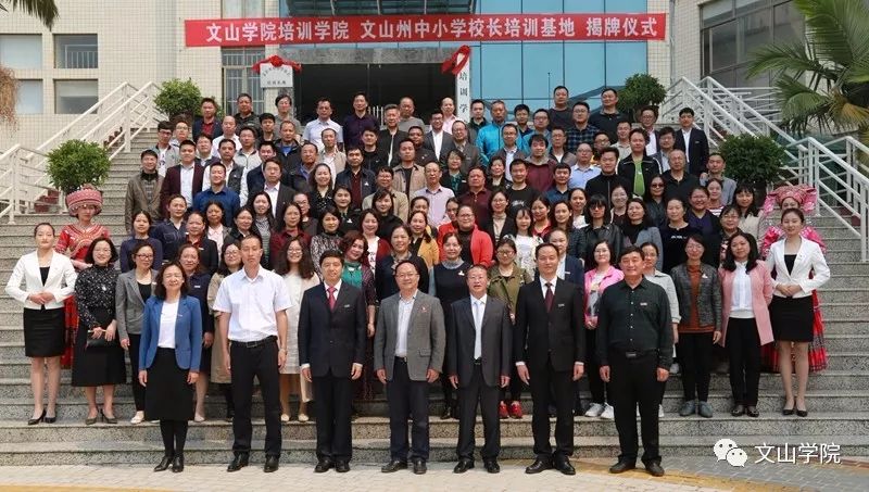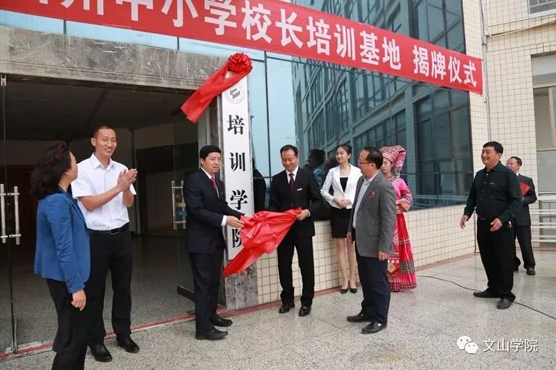 为更好地发挥文山学院在文山地区的社会培训作用,进一步加强学校服务地方经济社会的能力,有计划地对社会培训中有关的人力和资源进行合理配置,促进全州教育事业持续、健康发展,推进学校应用型示范校建设,2019年3月31日,“文山学院培训学院”、“文山州中小学校长培训基地”在文山学院成立,文山州教工委书记、州教育体育局党组书记、局长袁加全,文山学院党委书记熊荣元,党委副书记、院长李炳泽,党委副书记冯林虎,副院长吕昌会,纪委书记杨萍,组织部长李洪潮出席了揭牌仪式,仪式由冯林虎副书记主持。