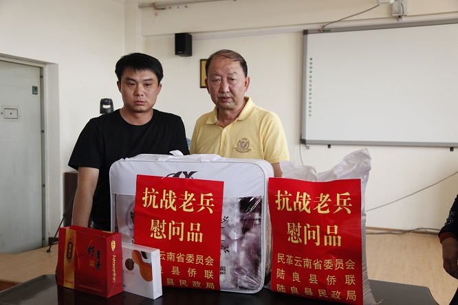 9、发放抗战老兵爱心砖茶、滇缅公路筑路民夫纪实光盘以及敬老慰问金(共4200元)。2018年9月,昆明爱心人士陶立志先生,向陆良县抗战老兵、相关单位和志愿者,捐赠了抗战老兵爱心砖茶、滇缅公路筑路民夫纪实光盘以及敬老慰问金,至同年10月中旬,此项捐助物资已全部发放完毕。21位抗战老兵分别领取了茶叶、光盘以及200元慰问金。